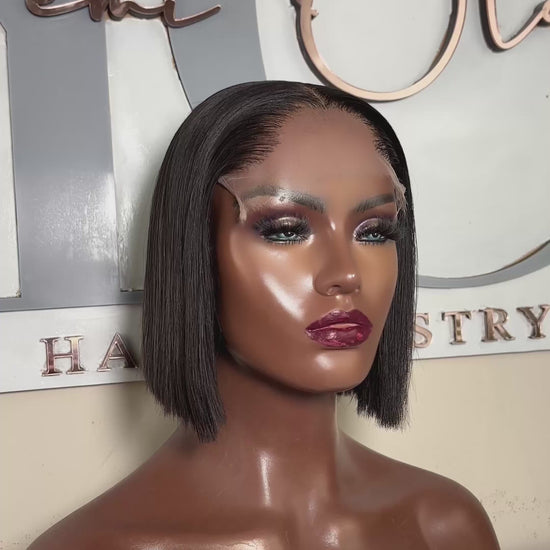 This cropped bob sits gracefully along the chin, perfectly framing the face with a clean, modern silhouette. Crafted from 100% raw human hair in a natural colour (1B), it offers a healthy, lustrous finish that complements every skin tone.
